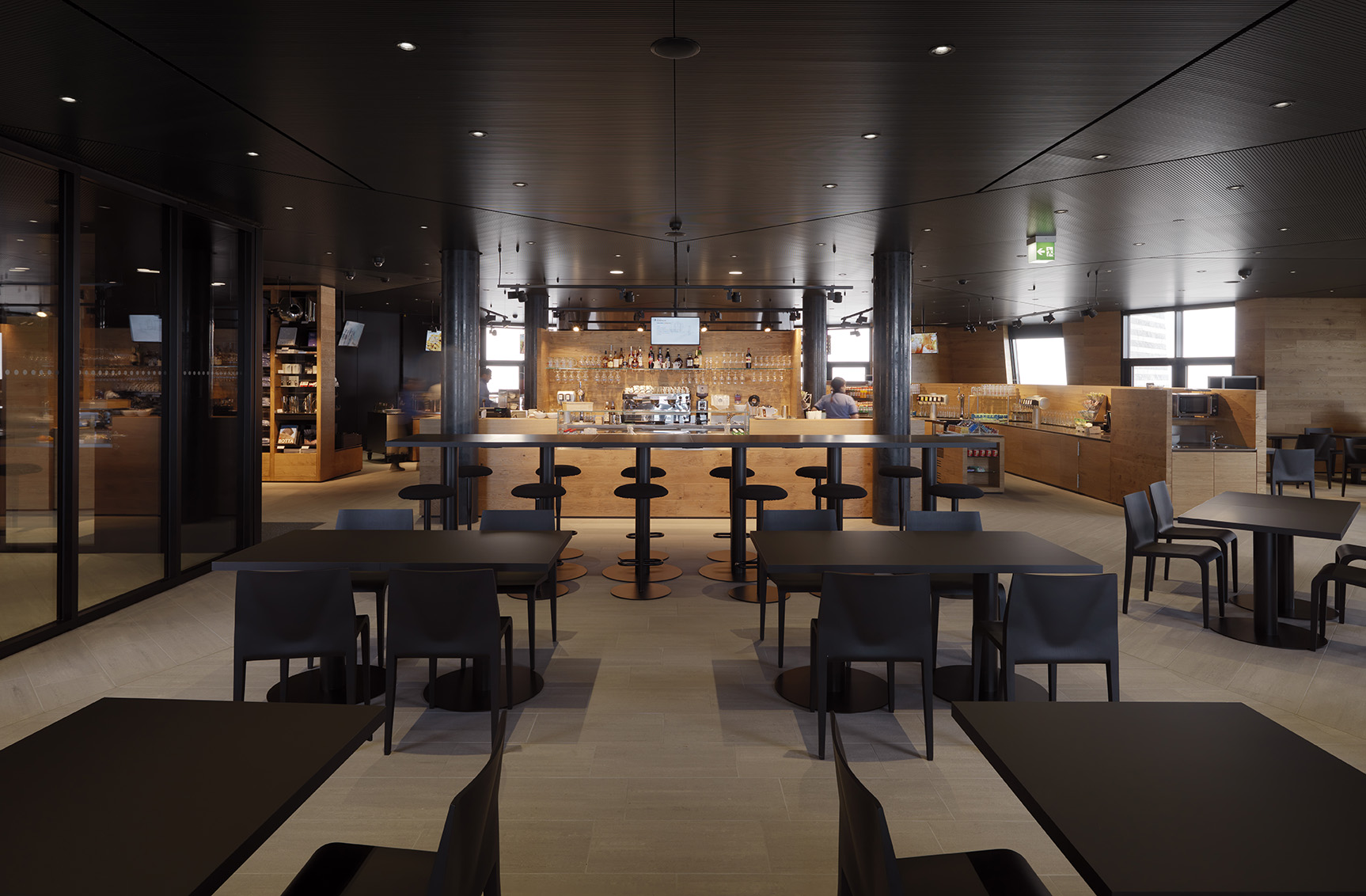 Vieni a scegliere fra i piatti freschi preparati sotto i tuoi occhi e dal ricco buffet: potrai gustarli occupando uno dei 120 posti a sedere, e poi fare direttamente un giro in terrazza per ammirare il panorama. Per la colazione e la pausa caffè, visita la caffetteria. E non dimenticare di passare dallo shop collegato al ristorante, con tanti prodotti locali e idee regalo.